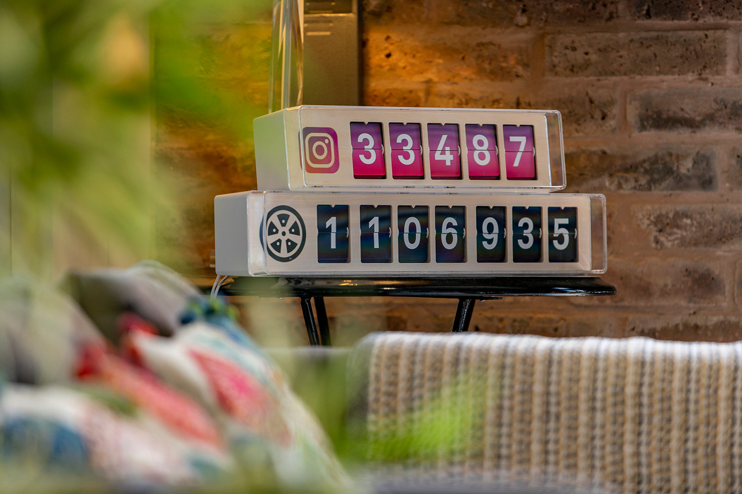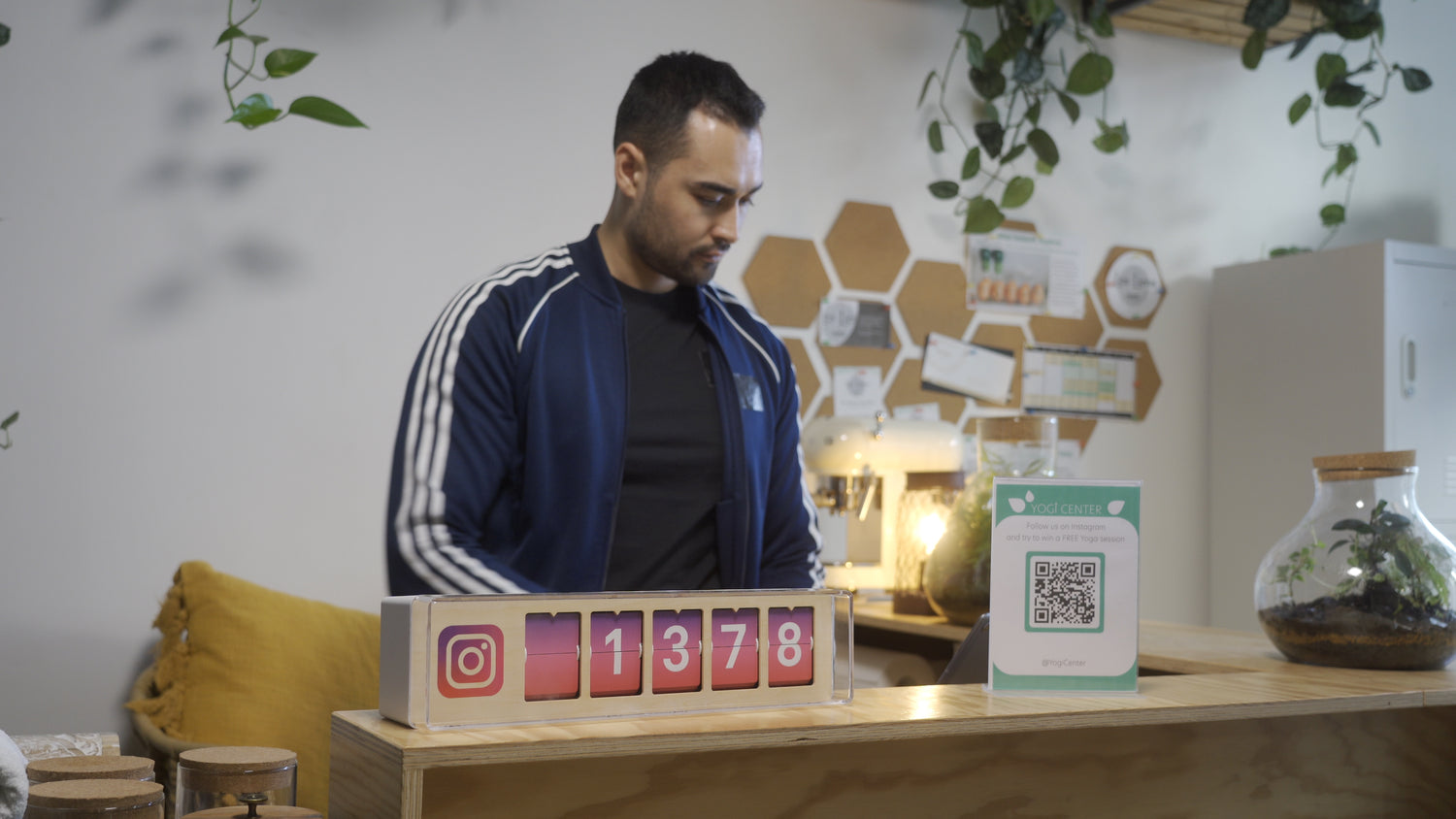 De counter is een mechanische teller rechtstreeks verbonden met je Instagram-pagina. Het toont je volgersaantal live, wat perfect je online aanwezigheid en fysieke wereld verbindt. Zo ziet je offline gemeenschap je constante groei, wat meer klanten trekt! Een mooie plus voor jou en je Social Media Counter. Groei met onze real life counter!